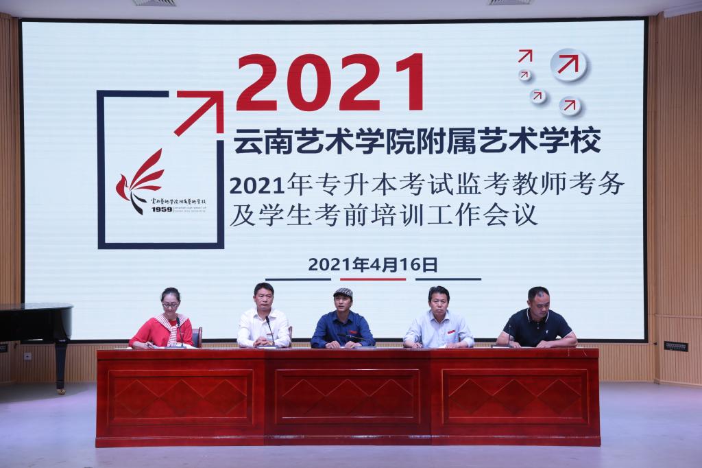 为确保疫情期间附艺校2021年专升本考试工作正常进行,4月16日12:30,教务科在艺术实训楼组织召开了2021年专升本考试考务工作会议。附艺校校长农布七林、副书记杨石有、教务科科长和桂萍、学保科副科长杜永正、美术科副科长雷敬文出席会议,监考教师及参考学生参加了会议,会议由教务科科长和桂萍主持。