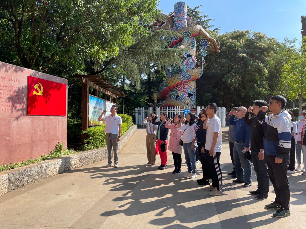 在三台山党建文化公园党史文化长廊,全体党员重温了入党誓词。