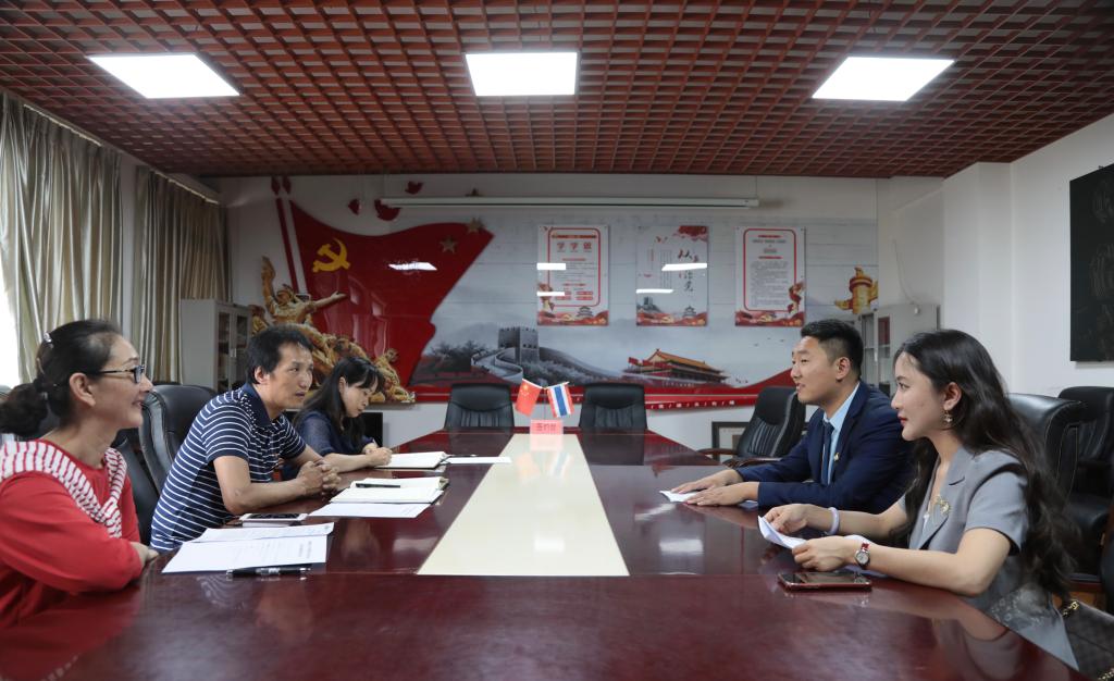 首先,农布七林校长对来宾表示欢迎,并介绍了附艺校的办学特色、文化建设及国际合作交流等情况。他表示,双方要抓住国家“一带一路”倡议的发展机遇,借力泰国格乐大学在中国建设生源基地的契机,进一步完善交流体系,在教师交流、科研项目合作、学生游学就业、服务“一带一路”倡议、引进优质教育资源等方面加强合作,并力争取得成果。