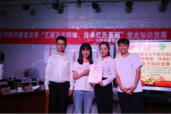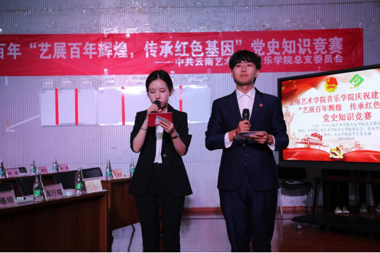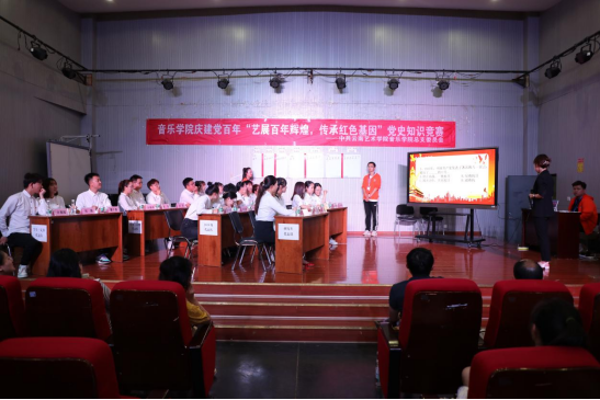 为深入贯彻落实习近平总书记在党史学习教育动员大会上的重要讲话精神,庆祝中国共产党成立100周年,持续深化党史学习教育,引导广大师生重温百年党史,传承红色基因,凝聚奋进力量,做到“学史明理、学史增信、学史崇德、学史力行”,beat365在线唯一官网登录将举办庆祝建党100周年党史知识竞赛。音乐学院团委及学生管理科为选拔出校级党史知识竞赛参赛人员,在音乐学院党总支的领导和指导下,于2021年6月1日19:00在音乐学院B403演播厅举办音乐学院庆建党百年“艺展百年辉煌 传承红色基因”党史知识现场选拔赛。