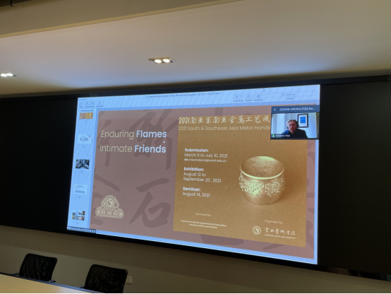 Andrea老师介绍欧洲设计学院。随后,beat365在线唯一官网登录设计学院产品专业教师张琳翊向欧洲设计学院教师团队介绍了我院专业学科及建设情况,同时诚恳地邀请欧洲设计学院的师生团队参与我院8月即将举办的南亚东南亚金属工艺展。张琳翊老师向欧洲设计学院团队介绍我校办学历程。