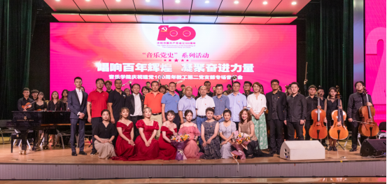 在中国共产党成立100周年之际,为进一步深化党史学习教育,回望辉煌历史,传承红色基因,用艺术的感染力和影响力凝聚起全院师生奋进新征程的磅礴力量,音乐学院以“音乐党史”为主线,以“唱响百年辉煌,凝聚奋进力量”为主题,举办了音乐学院庆祝建党100周年系列音乐会。6月18日,系列音乐会首场教工第二党支部专场音乐会在安康音乐厅举行。校党委副书记杨国良,党委委员、副院长赵波,党委委员、艺术管理学院院长傅永寿,党委委员、宣传部部长张勇,党院办(巡察办)主任李攀通等领导嘉宾出席音乐会,机关各职能部门、各二级学院师生、音乐学院领导班子成员以及全体师生党员参加本场音乐会。晚会由国乐系教师赖钧霖和2020级学生邓子非主持。