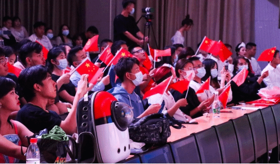 音符流淌间,音乐学院师生用歌声唱出了中国共产党“为中国人民谋幸福,为中华民族谋复兴”的初心和使命,唱出了在党的带领下全国人民为实现中华民族伟大复兴的中国梦努力奋斗的信念和决心。晚会在合唱《没有共产党就没有新中国》的歌声中推向高潮,校党委黄雁玲书记应全体参演党员师生邀请,上台带领全场400余名师生齐声唱响《没有共产党就没有新中国》,全场师生挥舞红旗,用激昂的歌声为建党100周年送上最为美好和真挚的祝福。音乐会即将结束,在场师生心情久久不能平静,在黄雁玲书记的带领下音乐会现场全体党员师生和音乐学院学生合唱团再次齐声高唱《英雄赞歌》《不忘初心》《歌声与微笑》等歌曲。