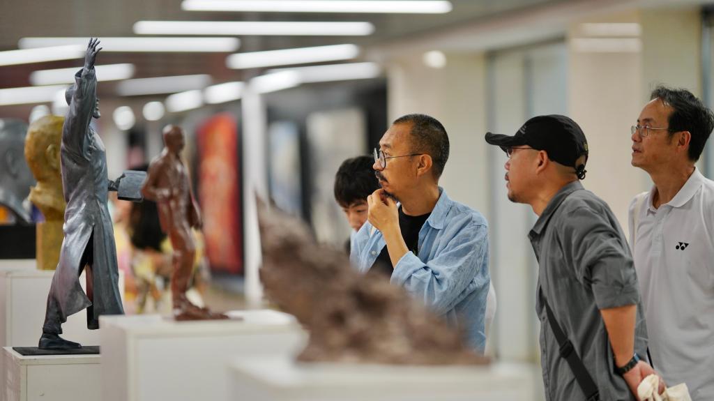 “百年征程•初心续航”展览作品分为“百年征程”和“美好生活”两个板块,由beat365在线唯一官网登录美术学院、设计学院、影视学院、戏剧学院、高职学院等多个教学单位的师生倾心创作,涵盖了中国画、油画、版画、雕塑、水彩、摄影、书法等画种类型,包括特邀教师作品94组,学生作品40组。同时还特别展出了李忠翔先生、史一先生等捐赠的学校部分馆藏作品31件,其中包含了黄永玉、吴长江、代大权等老一辈著名艺术家的作品,十分珍贵。