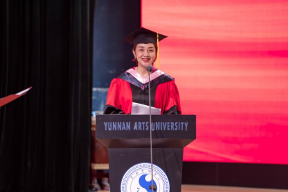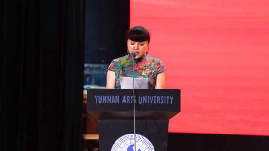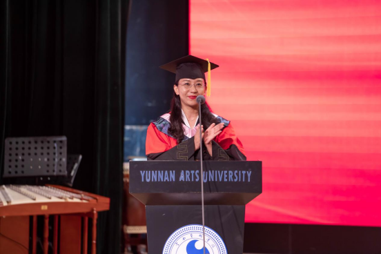 音乐学院作曲系业原教授作为教师代表发言。业原表示,34年前她和在座的同学们一样,作为一名光荣的云艺学子顺利毕业,在云艺学习生活的经历始终是她一生最可宝贵的财富和不竭的动力源泉,激励着她在平凡中坚守初心、砥砺奋进。希望毕业生们坚持梦想、不忘初心,注重细节、精益求精,勇挑重担、心怀家国。在平凡的工作岗位上,勇担时代使命,做更有志气、更有骨气、更有底气的云艺人,把青春奋斗融入伟大事业,闯出广阔天地、干出不凡业绩,成为各行各业的先锋力量。