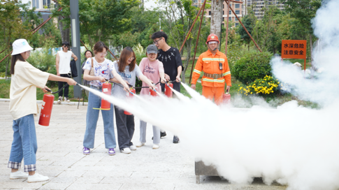 在灭火演练现场,老师们以及28名学生代表积极参与灭火器材操作技能实作演练,由消防员在两侧油盆点火后有序进行灭火演练。同学灭火器材使用不规范时,老师也会指导同学正确使用。消防演练。最后,老师鼓励在场同学积极参与灭火活动,规范使用灭火器材。