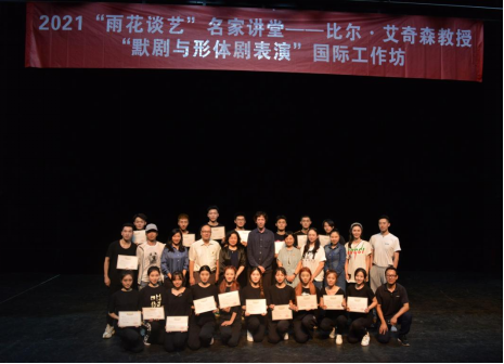 戏剧学院在beat365在线唯一官网登录对外合作交流处的指导支持下,邀请比尔•艾奇森(英国)教授来昆举行“默剧与形体戏剧”国际工作坊。7月12日上午开幕,经过五天紧凑地训练和教学,于2021年7月16日下午在戏剧学院112小剧场举行结业仪式暨成果汇报。校党委委员、戏剧学院党委书记张国岗,戏剧学院院长杨军、副院长杨俊霞、表演系主任和建元及部分教师、学生出席本次结业仪式。