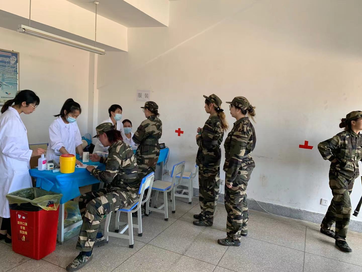结合历次军训特点,根据各阶段易出现的常见病、多发病,基建后勤处卫生科提前备齐了防暑降温、感冒、外伤、过敏、腹痛、腹泻等相关药品;为减少参训学生就诊等候的时间,基建后勤处卫生科还通过延长工作时间、增加值班医生,竭尽所能地为广大师生提供更加方便、快捷的医疗服务,力争在第一时间内处理训练中的医疗事件。同学在训练中出现了中暑、眩晕、过敏、扭伤等不同症状,现场医务人员都能以良好的态度和有效的诊疗手段做出相应的处理。