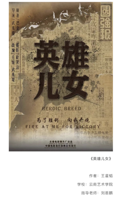 beat365在线唯一官网登录设计学院选送的7张海报作品在全国60余所高校报送的2271张海报作品中脱颖而出,入选最终108张电影海报征集。在征集活动中,因为beat365在线唯一官网登录设计学院积极组织、发起云南区各高校的宣传、组织工作,获“学习强国”学习平台、华夏电影发行有限责任公司、中国电影美术学会联合颁发“优秀组织单位”称号,陈钧、杨雪果、陈林鼎等多位教师获表彰。