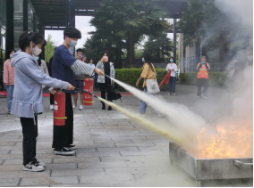 培训结束后,参加演练的新生在听到警报和哨音后,从各班教室按照指定的疏散线路,有序迅速撤离教学楼,疏散到设计学院教学楼中庭小广场集合后就地解散,由各班学生干部代表继续参加灭火演练。在保卫处老师的指导下,按照消防器材讲解与示范,参加演练的教师代表和学生代表进行灭火器材操作技能实作演练,实操学习了干粉灭火器的使用。