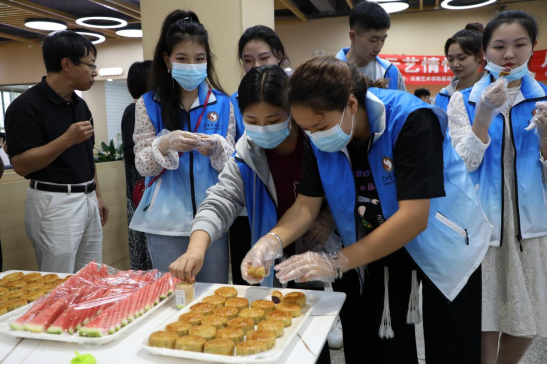 9月17日,在中秋佳节即将来临之际,由基建后勤处、学生工作部(处)和团委共同主办,苏州工业园区科桥餐饮服务有限公司云南分公司承办的以“云艺情怀中秋浓,月赠饼意表我心”为主题的月饼DIY手工制作活动在一号食堂一楼举办。学校党委书记黄雁玲、副院长卢宇辉、纪委书记姜玉海、副院长欧阳俊虎、基建后勤处、学生工作部(处)、团委领导、相关工作人员和60余名来自各二级学院及团学组织的学生参加了本次活动。