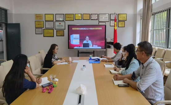 根据中宣部理论局、教育部教材局《关于做好高校思想政治理论课2021年版教材使用培训的通知》要求,2021年9月27日,马克思主义学院在公共教学楼B117设立了分会场,校党委黄雁玲书记、校党委杨国良副书记,马院思政课教师参加了此次高校思想政治理论课2021年版教材使用培训会暨集体备课会。