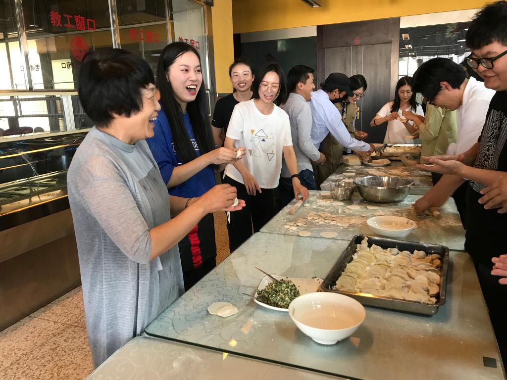 包饺子现场大家分工协作,有人和面,有人拌馅,有人擀皮,有人包褶,大家配合默契,干得热火朝天。因为来自五湖四海,包的饺子也形态不一,大家一边包饺子,一边亲切交谈,欢声笑语不断,处处洋溢着温暖与祥和的气氛,这不仅让新入职人员感受到了云艺大家庭的温暖,更让他们切身感受到了学校党委行政的亲切关怀。