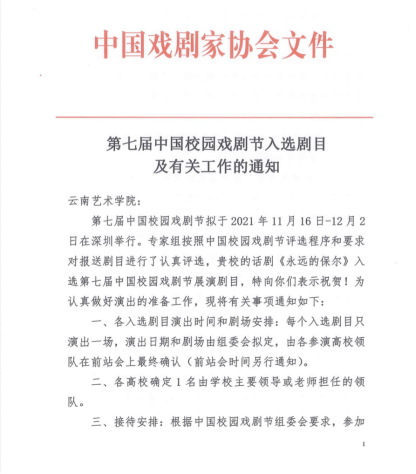 2021年9月17日,中国戏剧家协会发布第七届中国校园戏剧节入选剧目通知,beat365在线唯一官网登录戏剧学院创作演出的话剧《永远的保尔》入选,这也是戏剧学院创演剧目第四次入选中国校园戏剧节。将于11月赴深圳角逐全国校园戏剧最高奖“中国戏剧奖˙校园戏剧奖”。