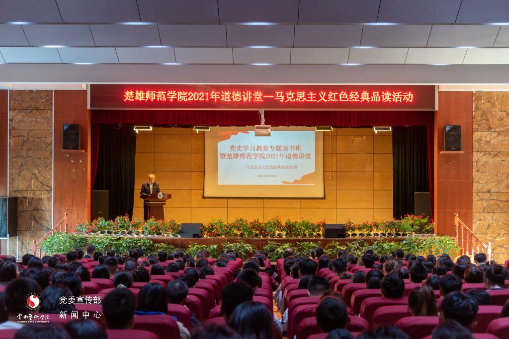 10月25日16:30,全体人员在楚雄师范学院雁塔校区上礼堂观看了《楚雄师范学院2021年道德讲堂——马克思主义红色经典品读活动》;19:30在雁塔校区雁峰精舍参加了联谊活动。
