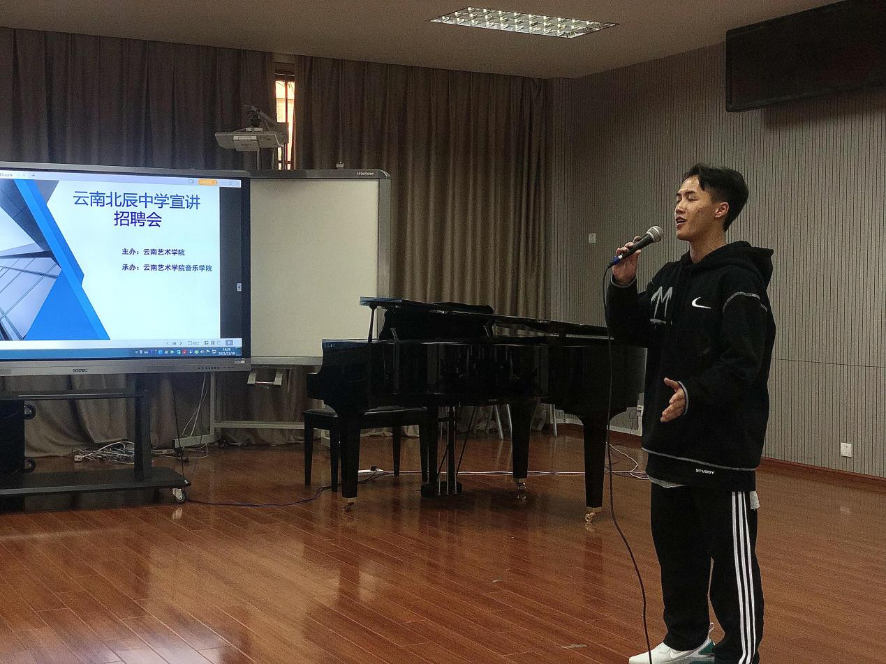 宣讲招聘会开始后,在播放学校宣传片的基础上,云南北辰中学的何振文副校长做现场宣讲,向参加应聘的学生介绍学校的基本情况和此次招聘的需求情况。