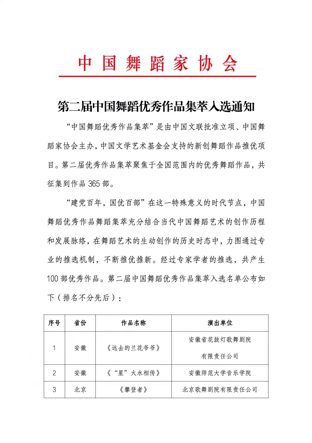 “中国舞蹈优秀作品集萃”是由中国文联批准立项、中国舞蹈家协会主办,中国文学艺术基金会支持的新创舞蹈作品推优项目。第二届优秀作品集萃聚焦于全国范围内的优秀舞蹈作品,共征集到作品365部。