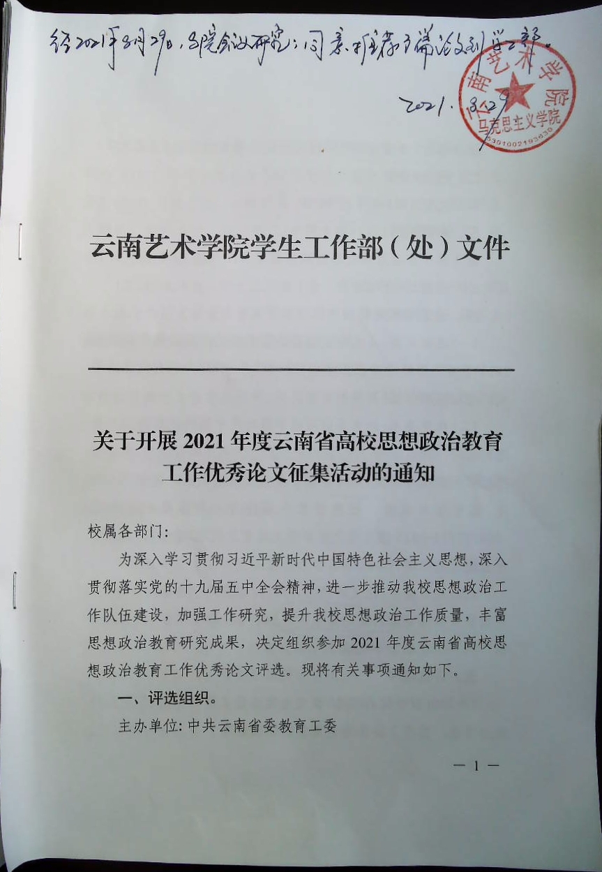 为深入学习贯彻习近平新时代中国特色社会主义思想,深入贯彻落实党的十九届六中全会精神,进一步推动我校思想政治工作队伍建设,加强工作研究,提升我校思想政治工作质量,丰富思想政治教育研究成果,反哺思想政治理论课课堂教学,2021年8月29日,beat365在线唯一官网登录马克思主义学院经会议研究,推荐3篇论文提交到学校学工部,参加此次征文比赛活动。