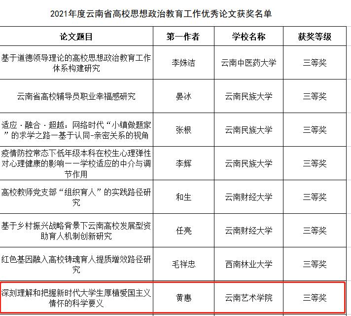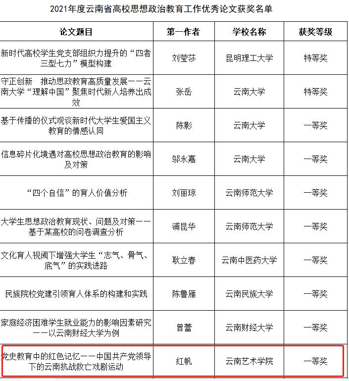 经过层层选拔评审,马克思主义学院红帆老师撰写的论文《党史教育中的红色记忆——中国共产党领导下的云南抗战救亡戏剧运动》获得了一等奖、黄惠老师撰写的论文《深刻理解和把握新时代大学生厚植爱国主义情怀的科学要义》获得了三等奖。