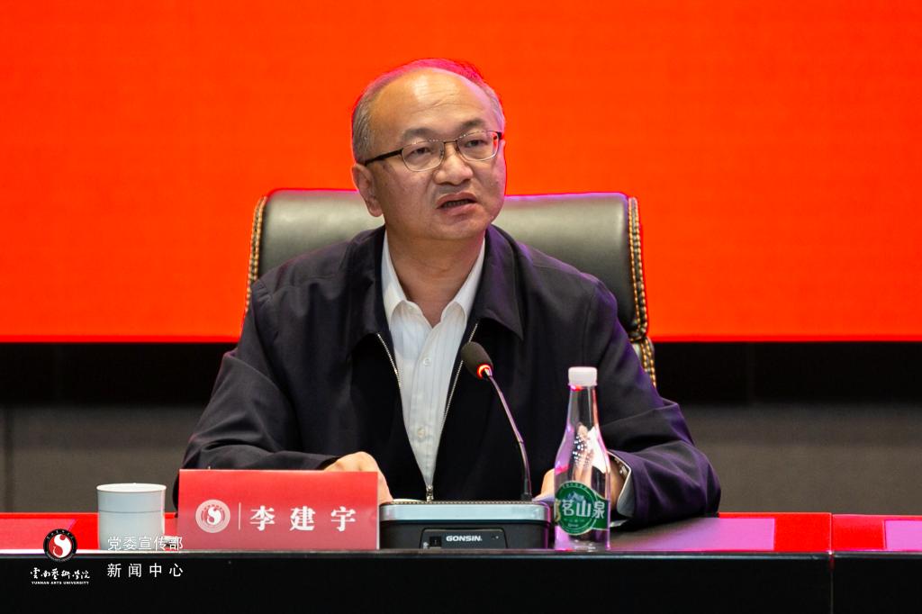 李建宇同志在会上作表态发言,对省委决定表示坚决拥护和服从。李建宇同志表示作为一名云艺新人,将尽心竭力,以实际行动推动云艺发展,实现新跨越,取得新成效。今后的工作将从以下四个方面下功夫:一是提升站位讲政治,全面落实立德树人根本任务,为党育人,为国育才。二是接续奋斗抓发展,推动学校各项工作提质增效,实现新的高质量发展。三是求真务实促改革,把方向、谋大局、定政策、促改革,推动学校改革发展再上新台阶。四是清正廉洁做表率,以严要求正风肃纪,用高标准守正创新,着力打造风清气正的干事创业环境。