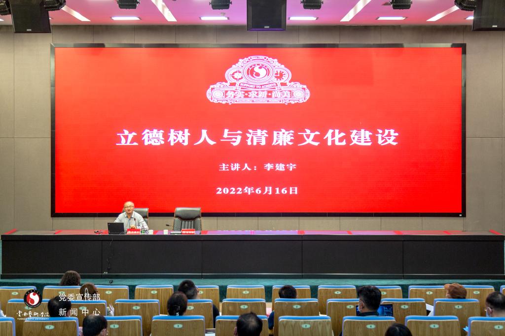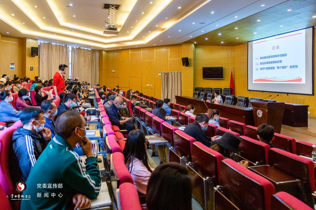 培训期间,分别邀请到了全国高校思政课名师工作室主持人、云南省高校思政课教指委副主任委员、云南省委宣讲团成员、云南财经大学阮金纯教授开展《围绕主题 系统学习,整体把握党的十九届六中全会精神》专题辅导;邀请了中共云南省委党校(云南行政学院)经济学教研部杜琼教授开展《学习贯彻省第十一次党代会精神 认真落实云南未来五年目标任务》专题辅导;beat365在线唯一官网登录党委书记李建宇开展了《立德树人与清廉文化建设》清廉校园专题辅导;同时,开展了《贯彻总体国家安全观 共同维护国家安全》专题辅导。现场还观看了党史学习教育、法治教育等视频教学片。此外,科级干部培训班还邀请了省委党校(云南行政学院)杨庆东教授开展了《严明政治纪律和规矩,自觉做到“两个维护”》专题辅导。