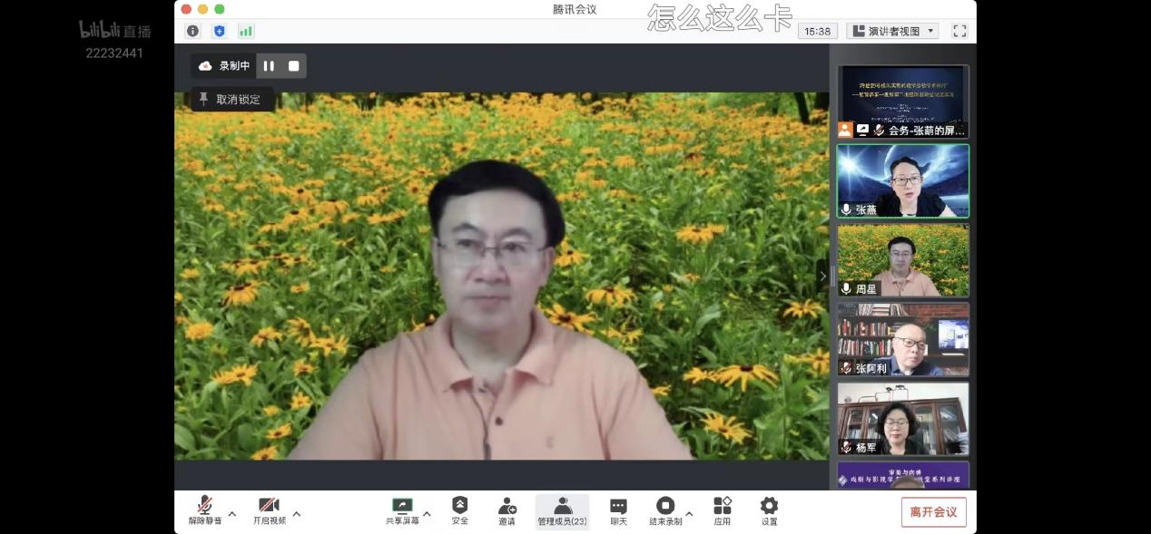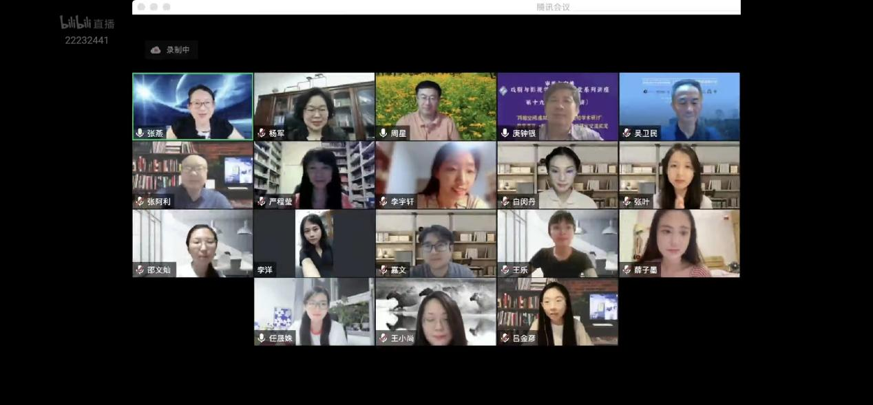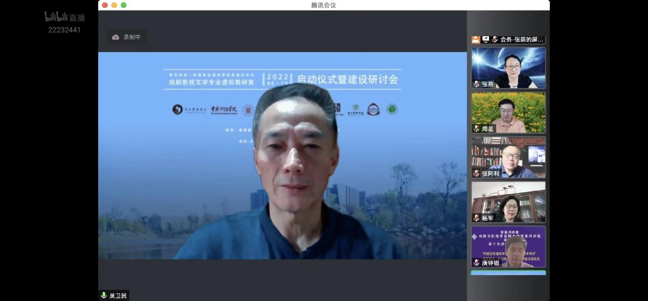 教育部高等学校戏剧与影视学类本科专业教学指导委员会秘书长张燕教授主持本次交流活动,两个虚拟教研室的负责人周星教授、吴卫民教授分别为本次活动致辞。两大虚拟教研室的线上活动,具有开放型、创新型、高效型标志意义。在推进智能时代下戏剧与影视学术前沿理论热点的背景中,把虚拟教研室的路径落脚于学生活动、学生培养上,加强双中心、双主体、双核心的“教与学”过程,体现出行动、联动和互动的人才培养成果。