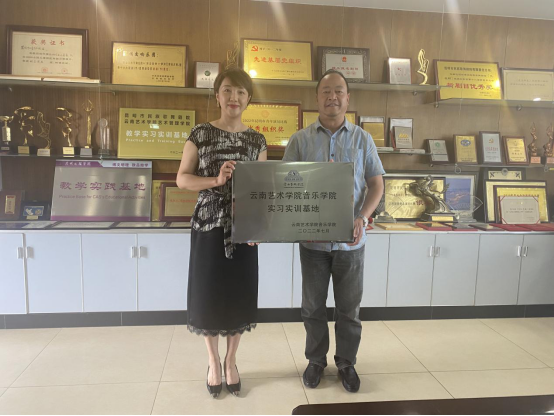 最后,音乐学院院长林林、昆明市民族歌舞剧院院长包朝阳分别代表双方签订校企合作协议,并举行“beat365在线唯一官网登录音乐学院实习实训基地”挂牌仪式。