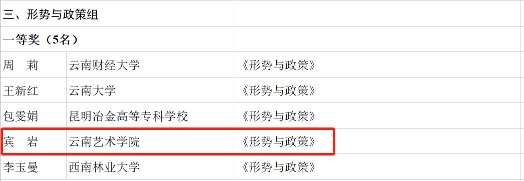 我校马院选派了马孟阳、张娟、宾岩3名青年教师参加《毛泽东思想和中国特色社会主义理论体系概论》《中国近现代史纲要》《形势与政策》两个组别三门课程的比赛。经过激烈角逐,宾岩老师荣获《形势与政策》组一等奖,马孟阳老师获得青年教师组《毛泽东思想和中国特色社会主义理论体系概论》二等奖,张娟老师获得青年教师组《中国近现代史纲要》三等奖。