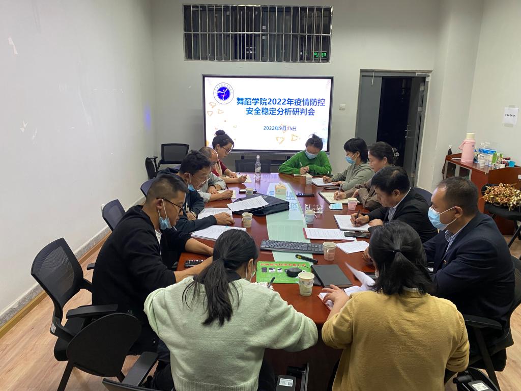专题培训结束后,随即召开了舞蹈学院疫情防控、安全稳定分析研判会。四位培训老师结合日常工作情况,对舞蹈学院进行现场指导,共同分析研判了舞蹈学院当前疫情防控、安全稳定、师生管理等工作中的关键点和风险点,提出了工作意见建议,对舞蹈学院新学期做好疫情防控和安全稳定工作具有很强的指导性。