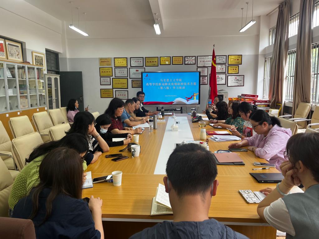 马克思主义学院党总支把学思悟《习近平谈治国理政》第四卷作为习近平新时代中国特色社会主义思想武装头脑的一项重大政治任务。一是对全体思政课教师就认真学习《习近平谈治国理政》第四卷提出了明确要求,并纳入党总支会议“第一议题”和理论学习中心组学习计划,于9月9日、16日组织2次专题学习。二是要求4个教工党支部把《习近平谈治国理政》第四卷作为“三会一课”“主题党日”的学习内容。9月20日,组织全体思政课教师开展了1次“《习近平谈治国理政》第四卷与全面建设社会主义现代化国家”为主题的专题理论辅导,与会人员纷纷畅谈了学习体会。三是以教研室为单位,先后开展《习近平谈治国理政》第四卷融入课堂教学的集体备课会,实现“进教材、进课堂、进头脑”。通过利用各种载体,采取多种形式,马克思主义学院掀起了读原著学原文、悟原理知原义的热潮,以此为契机,更加持续、自觉地学懂弄通做实习近平新时代中国特色社会主义思想,以“马院姓马,在马言马”的理论自觉和责任担当迎接党的二十大胜利召开。