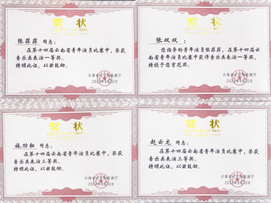 在本次大赛中,参赛师生们彰显了音乐学院的优秀组织能力和办学成效以及在云南省内的专业艺术水平影响力,获奖人次再创新高。未来音乐学院将继续依托高水平赛事,以赛促教、以赛促练、以赛促学,不断提升师生们的艺术实践能力。继续砥砺奋进,为学校的学科建设增砖添瓦,再创佳绩!