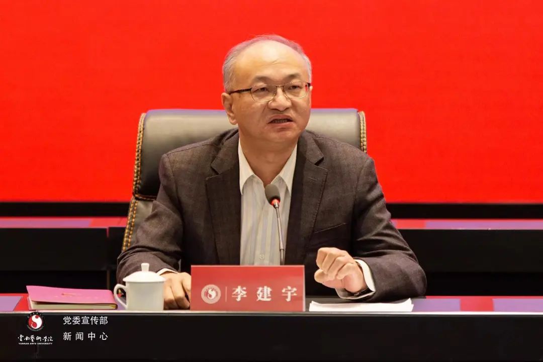 党委书记李建宇主持会议并作题为《以党的二十大精神为指引 加快推进一流艺术院校建设高质量发展》的讲话。他认为,过去的一年是难中求进的一年,干中求进的一年,稳中求进的一年,他代表学院党委向全体党政领导,中层干部以及为学院发展付出心血的负责同志表示衷心的感谢。随后,从三个方面进行了阐述。