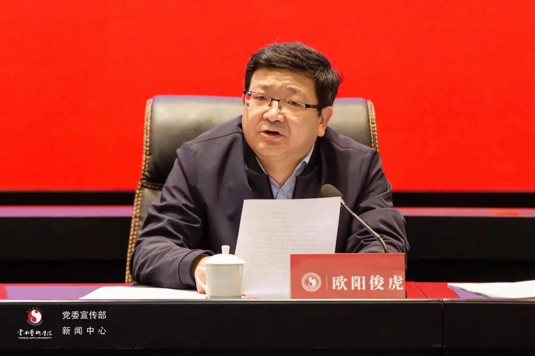 党委副书记、院长欧阳俊虎在会上对2022年的工作进行了全面系统的总结,并结合学院面临的新形势和新任务,对2023年的工作进行了安排和部署。他指出,过去的一年,学院以习近平新时代中国特色社会主义思想为指导,深入贯彻党的二十大精神,全面贯彻党的教育和文艺方针,落实立德树人根本任务,聚力高质量内涵式发展,全力推动各项工作落地落实,学院教育事业发展取得了新的成绩,在建设具有国际影响和特色鲜明的国内一流艺术院校的道路上迈出了坚实步伐。他表示,这些成绩的取得是省委省政府坚强领导的结果,是省委教育工委省教育厅关心指导的结果,更是全体师生员工顽强拼搏,埋头苦干,团结奋斗的结果。