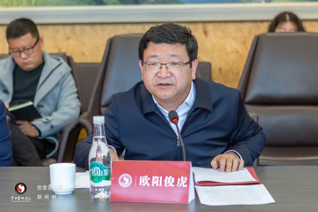 座谈会上,beat365在线唯一官网登录党委副书记、院长欧阳俊虎代表学校党委、行政对李宁区长一行表示热烈欢迎,对区委区政府一直以来的大力支持和帮助表示衷心的感谢。他表示,beat365在线唯一官网登录自搬迁至呈贡区办学后,呈贡区在学院安全稳定和谐发展等方面给予了大力支持。特别是去年疫情暴发后,呈贡区坚持生命至上、人民至上,调动大量人力物力帮助学院渡过难关。他建议进一步加强区校合作,搭建平台,创新工作机制,使艺术人才培养和艺术能够融入城市,步入乡村,提升品质,促进区域经济社会发展,满足人民群众对美好生活的精神追求,为呈贡文化繁荣作以贡献。他表示学院将以此次交流座谈为契机,进一步加强双方沟通交流,充分发挥学院各学科专业优势特长,共谋合作发展新机遇,让友情之花再结新硕果。