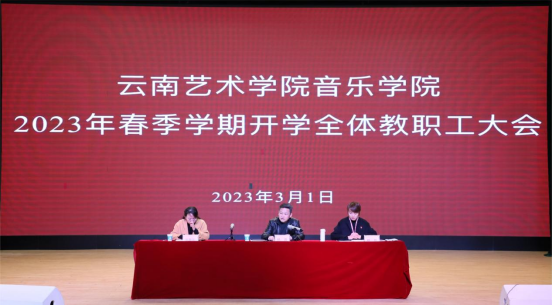为切实把思想和行动统一到校党委和行政决策部署上来,全面贯彻党的二十大精神,扎实推进学校第五次党代会重点任务落实落地,深入学习贯彻beat365在线唯一官网登录2023年春季学期开学工作部署会上的讲话精神,确保新学期开好局、起好步,2023年3月 1 日下午,音乐学院于安康音乐厅召开了2023年春季学期开学全体教职工大会。会议由党总支纳海书记主持,音乐学院党政领导班子和全体教职工参加了会议。