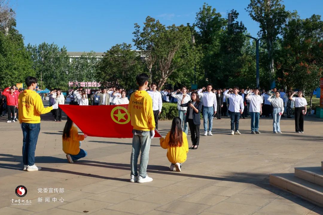 在家的党政领导班子成员出席仪式,相关职能部门负责人、二级学院团委负责人、全体辅导员、师生代表参加活动。仪式由学院团委书记赵颖主持。