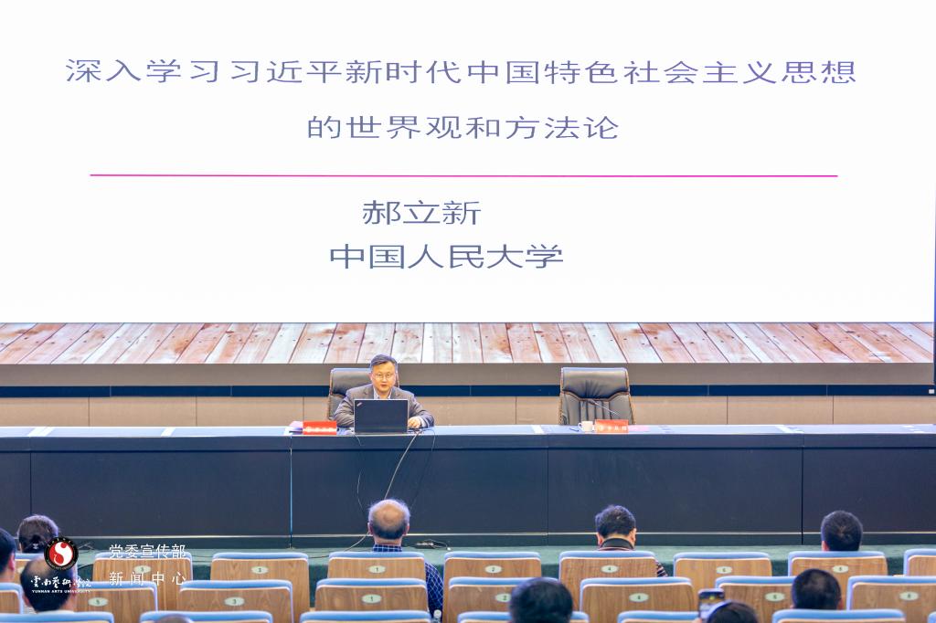 2023年4月27日下午,beat365在线唯一官网登录学习贯彻习近平新时代中国特色社会主义思想主题教育读书班第一次专题辅导暨党委理论学习中心组集体学习(扩大)在图书馆报告厅召开,邀请中国人民大学明德书院院长、教育部长江学者、特聘教授郝立新作“深入学习习近平新时代中国特色社会主义思想的世界观和方法论”专题辅导。