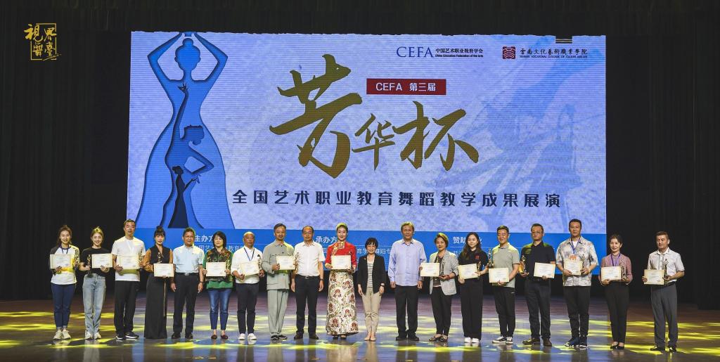为了更好的推进附艺校省级双优专业(舞蹈表演)的建设,附艺校为参加此次“芳华杯”舞蹈教学成果交流展示展演,精心组织,积极备赛。自2021年7月便组织教师团队进行采风、创作、排练。两年间,秉承潜心打磨精品的耕耘之心,最终将节目的最佳效果呈现展现在本次展演中,演出结束后我校的节目获得所有评委的一致好评。在24日晚的颁奖晚会中,原创藏族男子群舞《牛·弦·情》荣获教学成果展演最佳展演展示的称号,原创作品藏族男子群舞《牛·弦·情》和哈尼族男女群舞《春耕》均获CEFA第三届艺术职业教育舞蹈教学成果展演活动教学剧目群舞园丁证书。