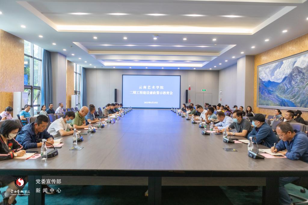 按照学院党委工作部署,依据《beat365在线唯一官网登录呈贡校区二期工程建设专项督查行动方案》要求,为共同营造清亲统一的校企关系,共同创建清廉、崇廉、守廉的风清气正的育人环境, 争创“阳光工程、廉洁工程、安全工程、质量工程”,真正把二期工程建设成让全院师生满意的“民心工程”,助推学院高质量发展。2023年6月15日下午,学院纪委对呈贡校区二期建设指挥部全体成员及参建各方主要负责人开展廉政警示教育。驻省教育厅纪检监察组副组长鲁正清,学院纪委书记、监察专员姜玉海,二期建设指挥部全体成员、参建各方主要负责人及学院纪委委员、纪检干部,共计100余人参加会议。会议由学院纪委副书记张镇宇主持。