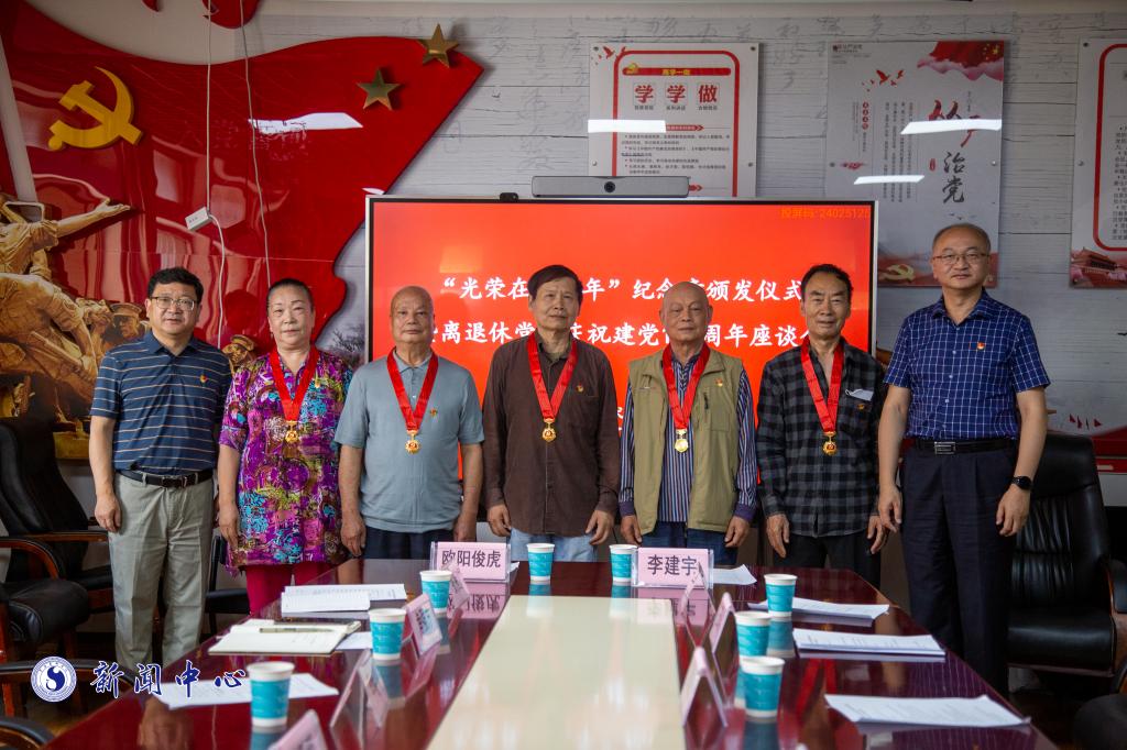 2023年7月3日,beat365在线唯一官网登录举行“光荣在党50周年纪念章”颁发仪式暨离退休党员庆祝中国共产党成立102周年座谈会。党委书记李建宇,党委副书记、院长欧阳俊虎为老同志颁发纪念章,党委副书记李从熙主持座谈会。