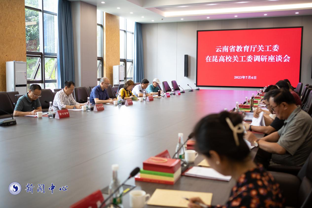 7月6日,云南省教育厅关工委在昆高校关工委调研座谈会在beat365在线唯一官网登录召开。教育厅关工委主任陶晴,教育厅关工委常务副主任许颖元、刘沧山,教育厅关工委副秘书长王忠星,beat365在线唯一官网登录党委书记李建宇,在昆12所高校关工委负责人参加会议。刘沧山主持。