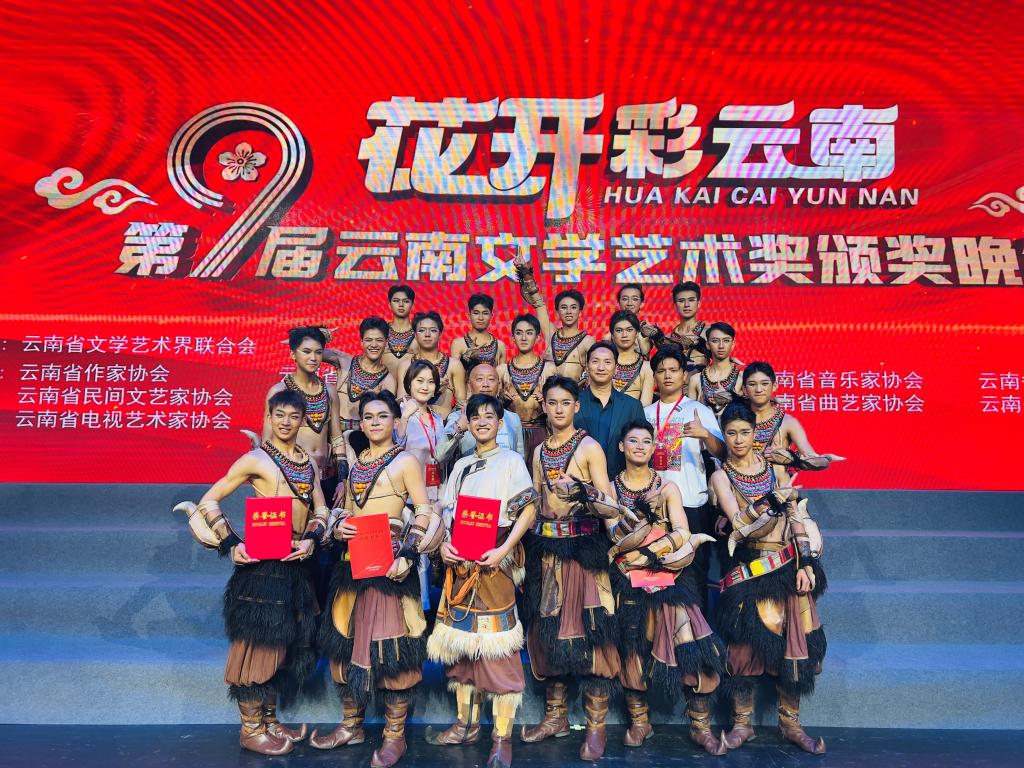 由云南省文联主办、省级各文艺家协会承办的第九届云南文学艺术奖于近期揭晓。我校原创傈僳族群舞《深山里的女高阿妈》及原创藏族群舞《牛·弦·情》喜获第九届云南文学艺术奖,在舞蹈类民族民间舞八个获奖作品中分别排名第二、第四,填补了学校办学以来在该领域奖项中的历史纪录。7月11日晚,原创藏族群舞《牛·弦·情》作为优秀作品代表再次登上颁奖晚会的舞台,获得了现场观众的阵阵掌声。
