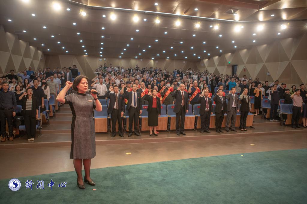 大会在全体教师合唱国歌中拉开序幕,全体教职工在党委副书记李彦萍带领下重温教师誓词。