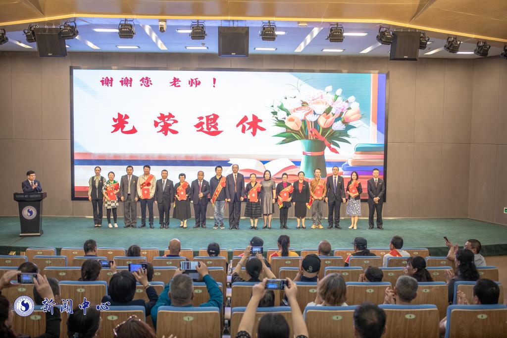 会上,与会领导分别为近3年退休的教职工、校龄30年以上教职工代表颁发荣誉证书,为新入职教师佩戴校徽。师向宁教授作为教师代表发言,表明坚守岗位、敬业奉献的决心和信心。