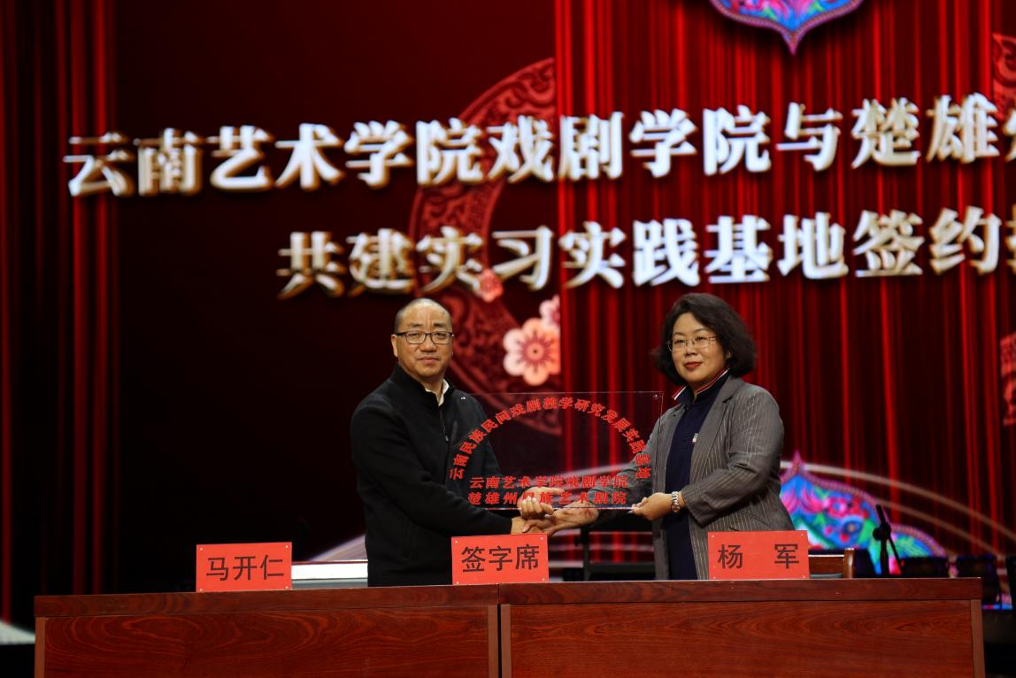 会后,戏剧学院与楚雄州民族艺术剧院达成合作协议,共建学生实习实践基地,并现场授牌。