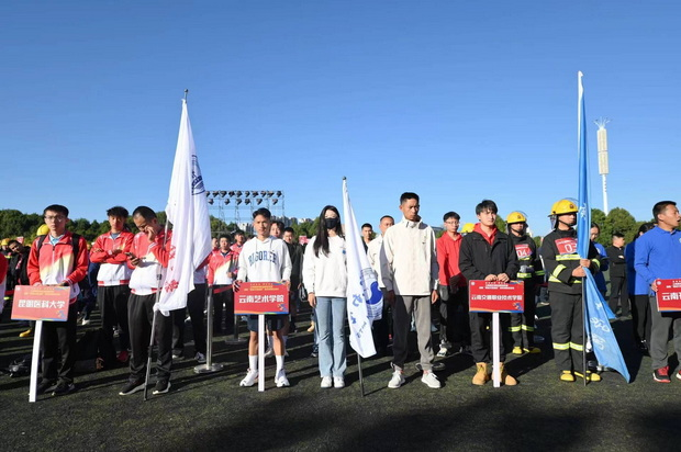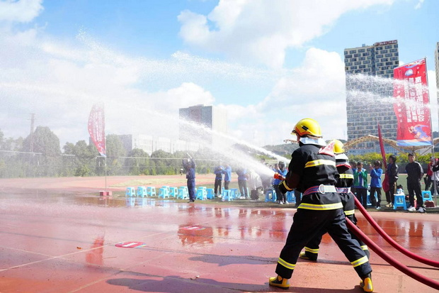 启动仪式后,呈贡区消防救援大队携手云南高校消防志愿者联盟共同举办首届“春城火焰蓝杯”高校消防运动会。10所驻呈高校师生共同参与,通过“400米障碍接力赛”“初战快速出水控火操”等项目比拼,让广大师生在运动中“零距离”学习消防知识,解锁消防课堂新体验。