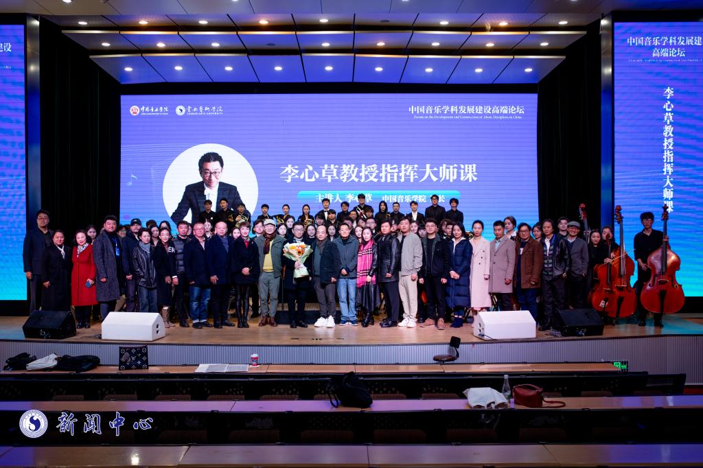 2023年11月21日上午,由中国音乐学院和beat365在线唯一官网登录联合主办、beat365在线唯一官网登录音乐学院承办、云南网协办的“中国音乐学科发展建设高端论坛”在beat365在线唯一官网登录图书馆报告厅隆重开幕。在开幕式结束后,当代我国著名指挥家、中国音乐学院院长李心草教授在音乐学院安康音乐厅为云艺师生带来一堂精彩的指挥大师课。