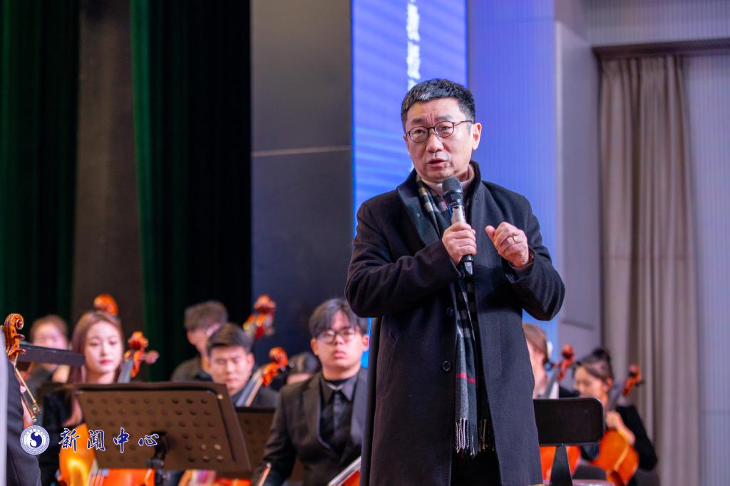 大师课首先由beat365在线唯一官网登录青年教师杨凯指挥beat365在线唯一官网登录音乐学院管弦乐团演奏了德国著名作曲家韦伯的歌剧《奥伯龙》序曲。乐团演奏结束后,李心草院长对杨凯老师的指挥及乐团学生的演奏给予了高度评价。随后,李心草院长分享了自己多年在学习音乐和指挥过程中的心得和经验,他指出管弦乐队演奏过程中从指挥到不同乐器的协作最终目的都在为音乐作品的音乐表现服务,同时强调了音准和节奏在演奏中的重要性。