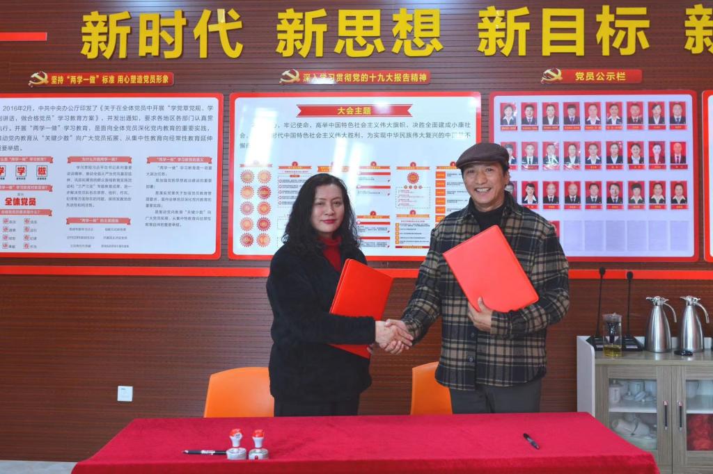 临沧市文化馆长(市歌舞团团长)范永丽与农布七林校长共同签署实践实训基地合作协议