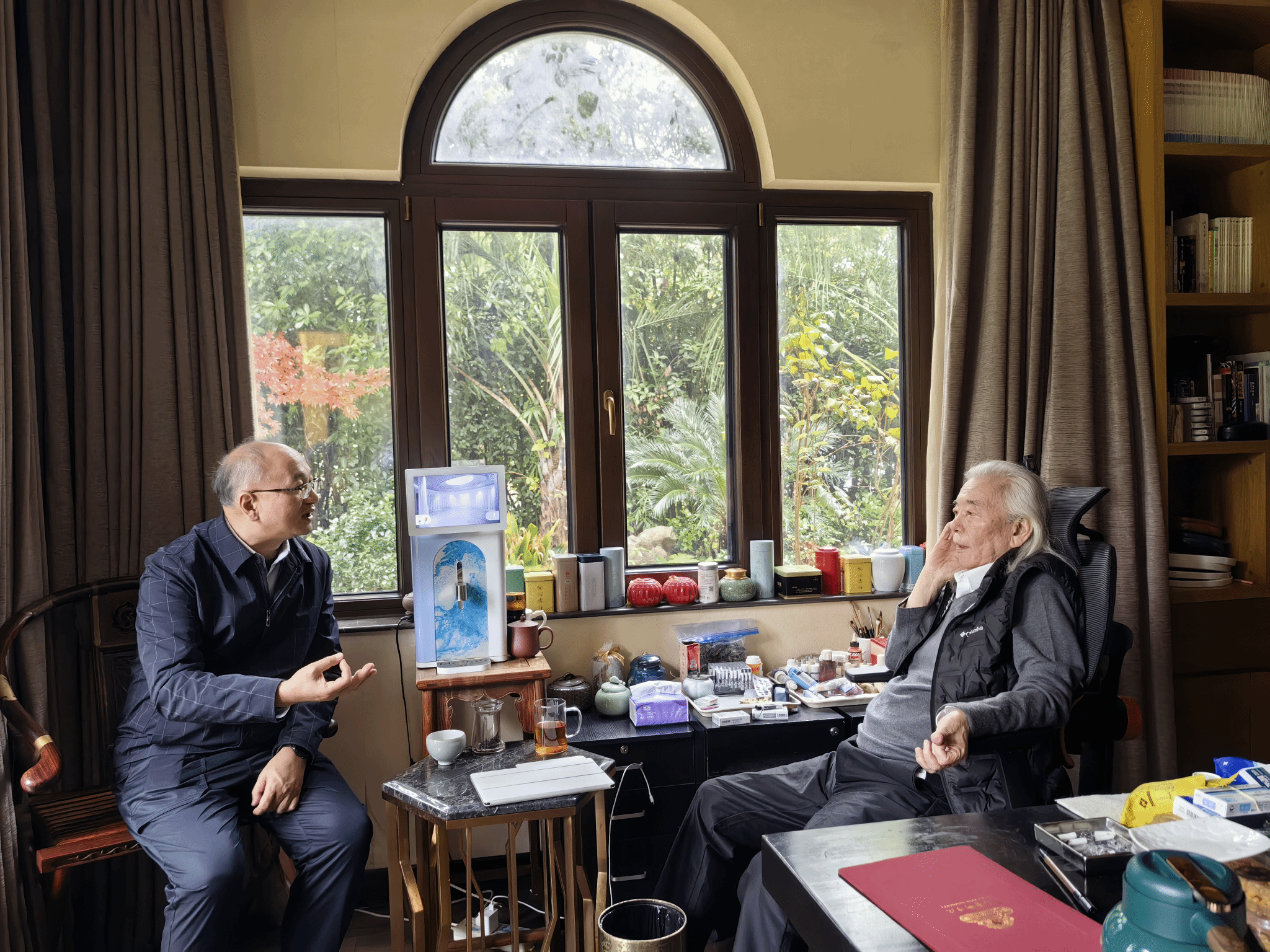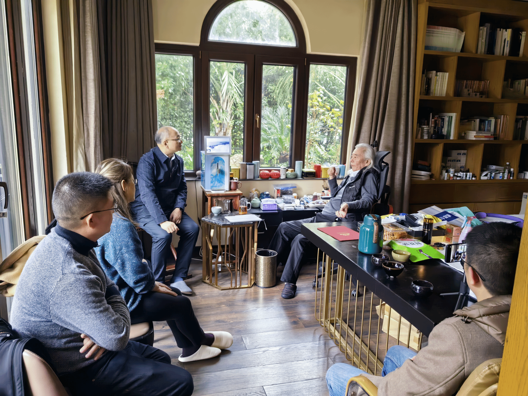 此次拜访,不仅是学校党委行政高度重视校史、校友工作的体现,也是对曾经在学校工作学习过的杰出师生的关心关爱。在拜访中,李建宇书记一行与丁绍光先生展开了深入且亲切的交流。书记悉心询问先生的身体近况与生活起居,对先生一直以来在艺术领域中的孜孜不倦追求表达敬意,就优秀艺术的探索、传承、创新及国际文化交流等诸多话题深入交流。丁绍光先生回顾了自己在学生时代到艺术生涯历程的点点滴滴,讲述了自己面对困难,在逆境中,坚持不断挑战和突破自我的故事,在艺术成长历程中的感悟与思考,以及对当下艺术发展趋势的深刻洞察等。